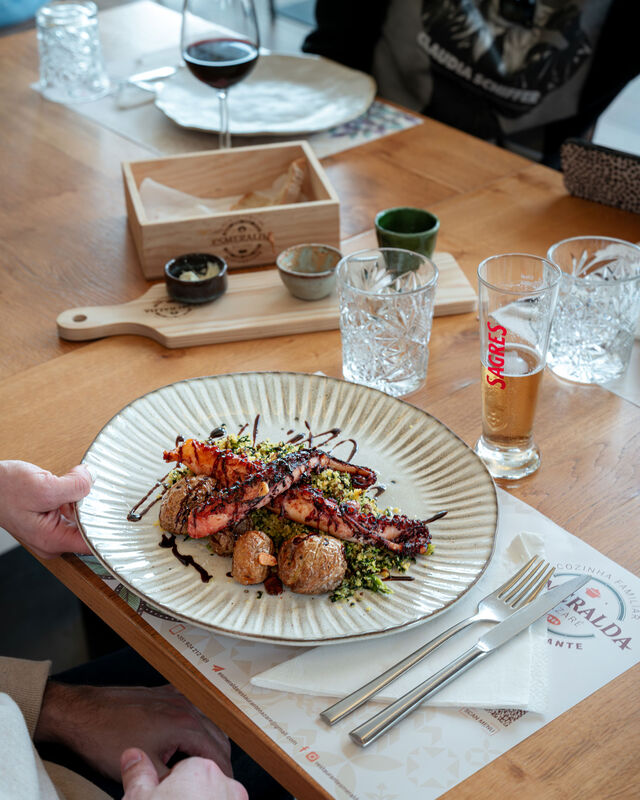 Aqui, cada receita é feita com mãos que sabem de onde vêm. Os sabores são genuínos, os ingredientes frescos, e o cuidado no prato é o mesmo que se teria a servir a família em casa. Do polvo à lagareiro ao bacalhau confitado, passando pelas carnes grelhadas e sobremesas de sonho, tudo é preparado com paixão e respeito pela cozinha portuguesa.